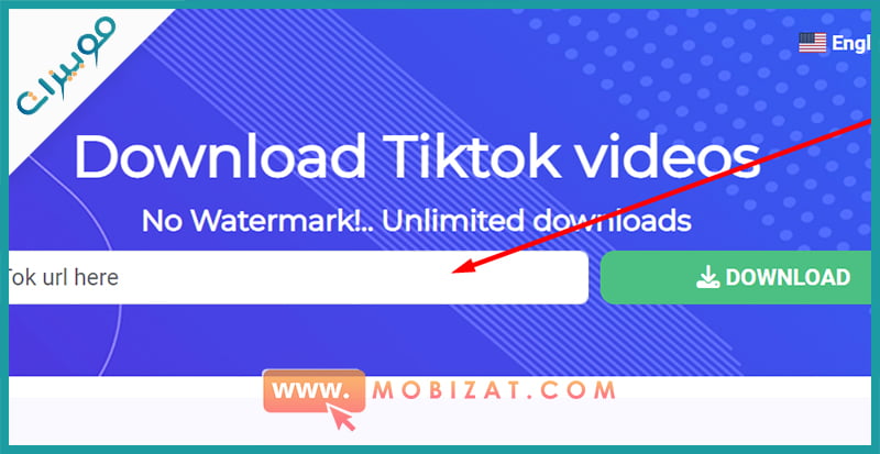 ثانياً: توجه إلى منصة التيك توك لكي تقوم بنسخ الفيديو الذي تريد أن تحصل عليه، وبعدها توجه إلى الموقع مرة أخرى وقم بإدخال الرابط في المربع المخصص للتحميل واضغط على Download كما هو موضح في الصورة أمامك.