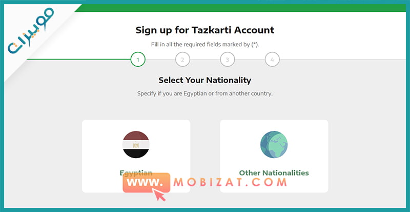 ثانيا: بعد الانتهاء من الضغط على خيار Register، بعدها سيتم تحويلك إلى صفحة أخرى بها خيار ما هي جنسيتك مصري أم من دولة أخرى، فقم باختيار ما يناسبك.